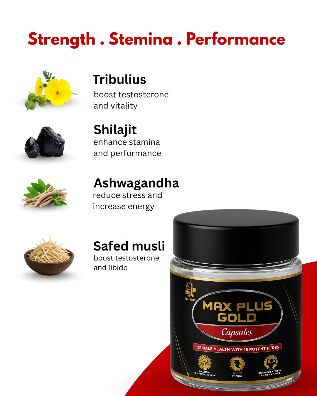Max Plus Gold DS combines powerful herbs like Shilajit, Safed Musli, Ashwagandha, Gokhru, Kaunch Beej, Vidarikand, Akarkara, and more—making it a trusted choice for men who want to boost their confidence and elevate their daily performance naturally.